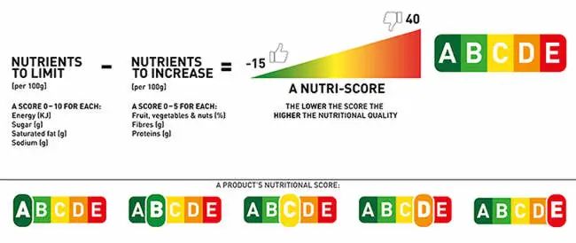 2、Nutri -Score:5级评分判高下