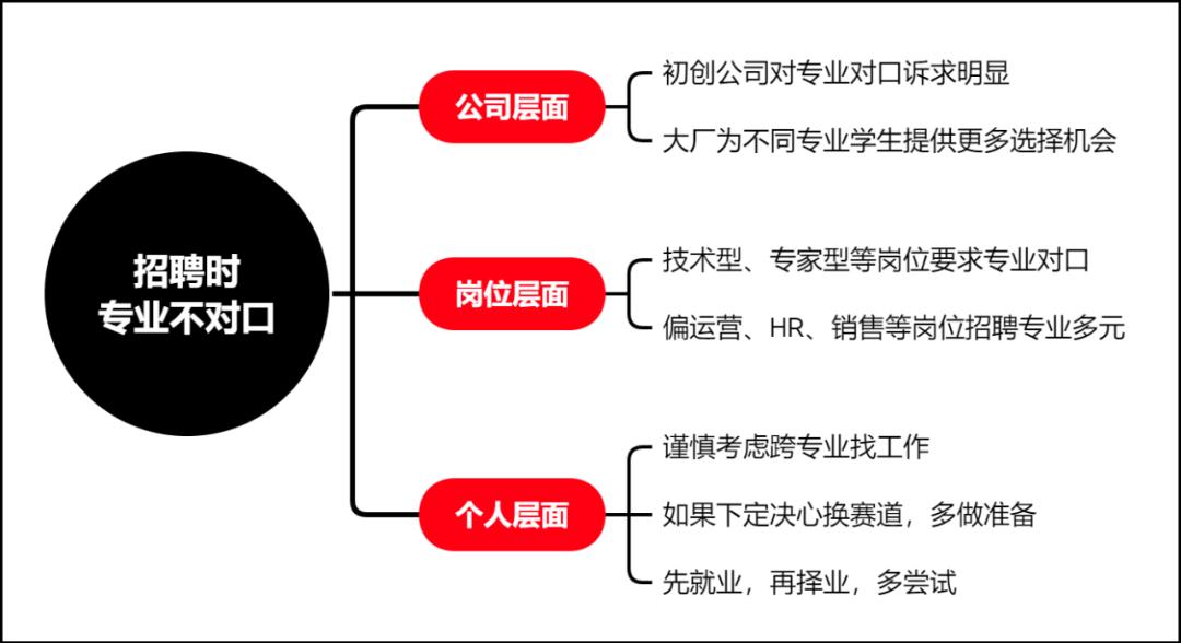 其次是岗位,如果是技术型、专家型这类岗位肯定要求专业对口。但偏运营方向、HR、销售等岗位对专业本身的要求没有那么高,招聘的专业也会更多元。