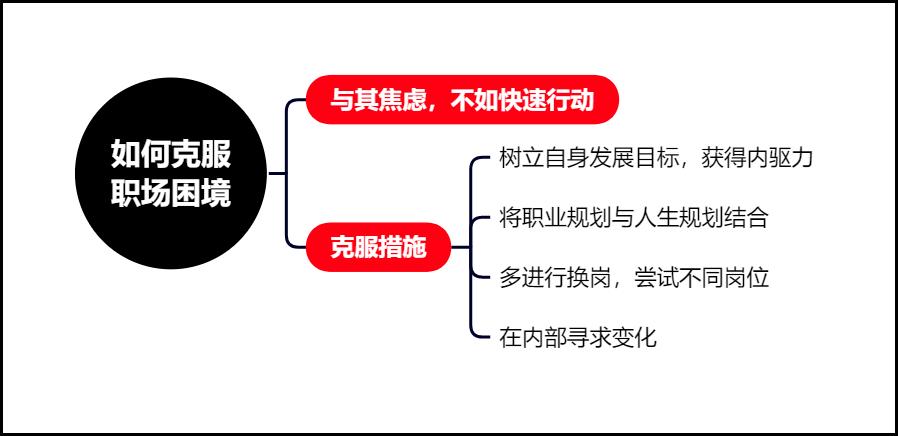 大家在职场上面临瓶颈时,最安全、最稳妥的一个方式是先在内部求变化。因为在公司内部大家对你很了解,你也了解公司的企业文化、流程机制和同事等,所以在内部换岗位相对来说比较容易。如果从外面再去跨领域、跨岗位,相对挑战会更高一点。