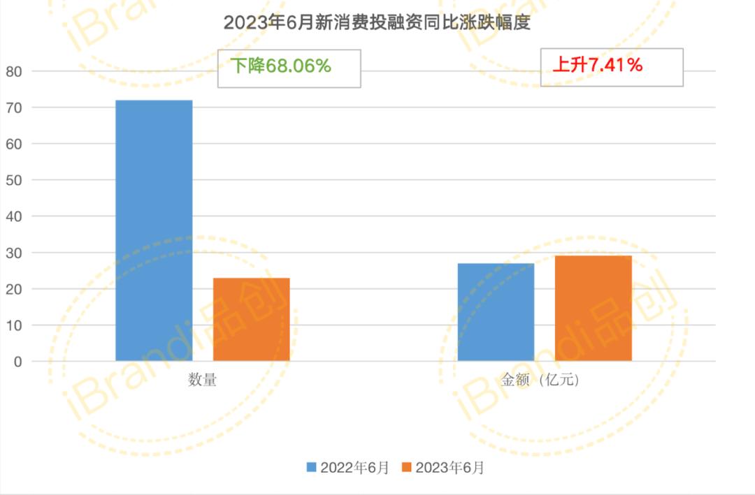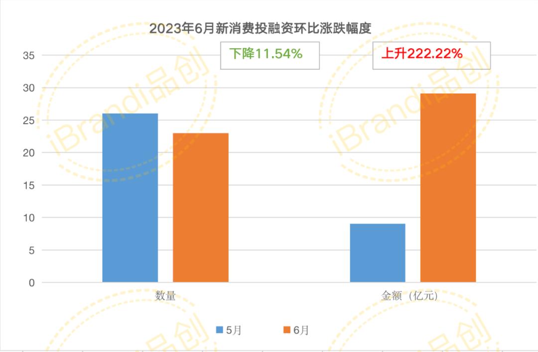 环比2023年5月,6月新消费投融资虽然数量下跌了11.54%,但是凭借几起亿级融资,金额涨幅高达222.22%。