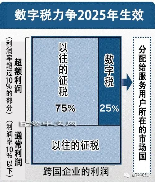 数字税是允许对在本国没有实体基地的企业征税的机制。日美欧中印等138个国家和地区计划签署有关数字税的条约,防止税收集中在IT大企业众多的美国。设想征税对象为营收超过200亿欧元、税前利润率超过10%的企业。不过,如果美国不批准,事实上将无法生效……