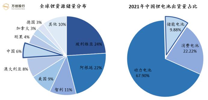 锂离子电池产业链发展较为成熟,但产业链条环节多,位于产业链上游的原材料企业具备较高的行业话语权,行业利润向上游集中,中下游企业议价能力较弱。锂电下游应用丰富,目前以动力领域为主,2021年锂电出货量中动力电池占比67.90%,储能电池仅占9.88%。