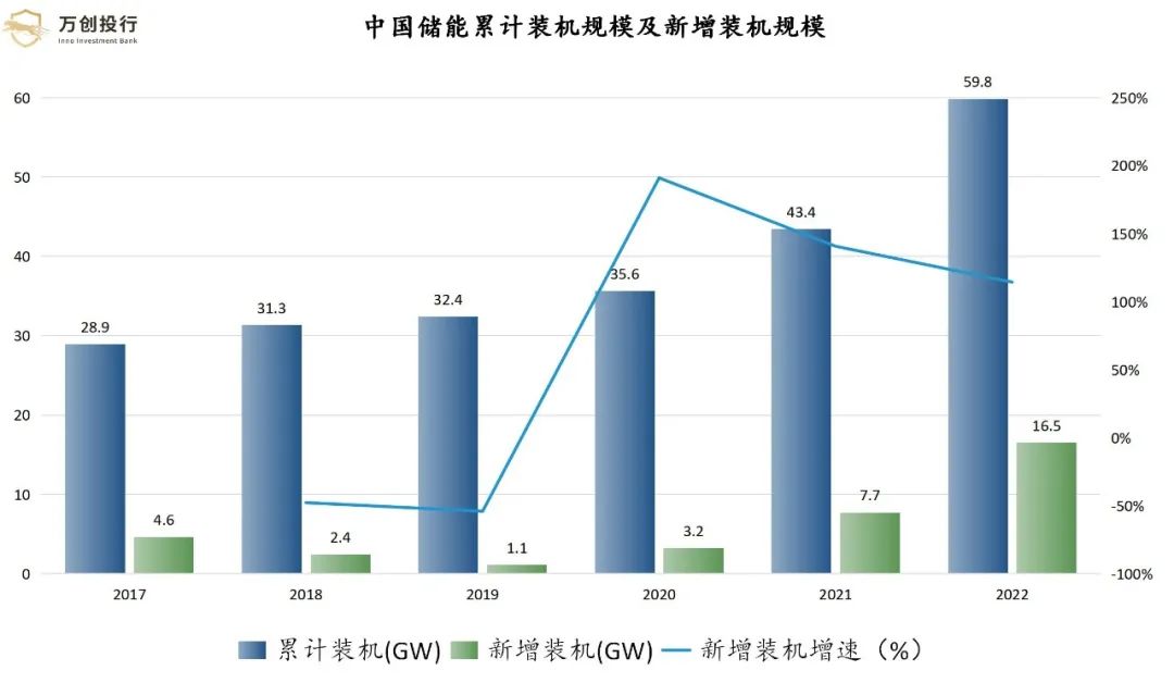 在高比例清洁能源系统中,为确保系统安全、经济运行,需要引入储能作为新的调节能力来源。根据CNESA的数据,2022年,中国新增投运电力储能项目装机规模首次突破15GW,达到16.5GW;新型储能新增规模创历史新高,达到7.3GW/15.9GWh,功率规模同比增长200%,能量规模同比增长280%。