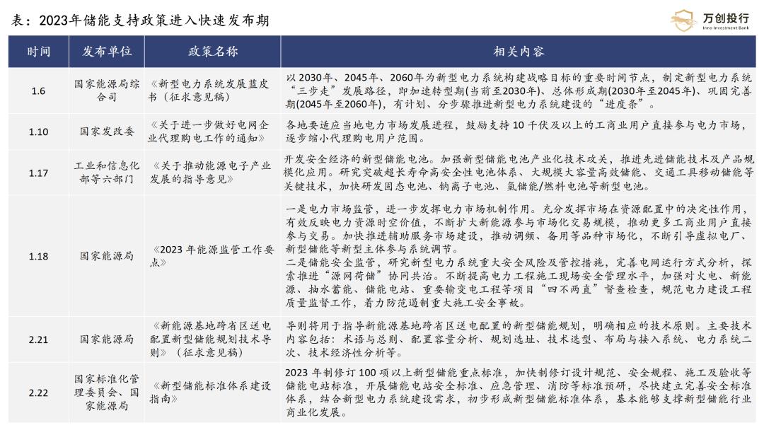 2023年以来,国家及地方储能政策发布进入高峰,其中1月份从国家到地方共有50余项发布或征求意见,涉及新能源配储、辅助服务市场、电力市场、补贴政策等方面;2月全国共发布26项储能产业相关政策。