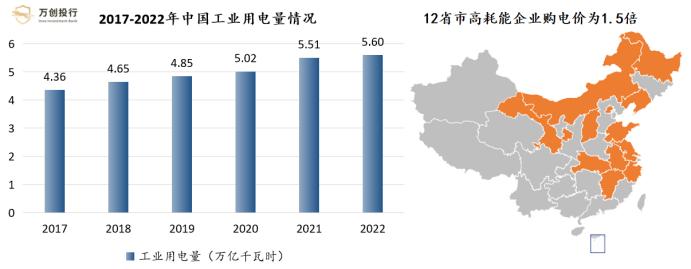 用户侧储能装机以市场驱动,受用电需求影响。工业用电量逐年平稳增长。2022年全社会用电量86372亿kWh,同比+3.6%,第二产业用电量57001亿kWh,同比+1.2%,其中全国工业用电量为55943亿kWh,同比+1.6%。