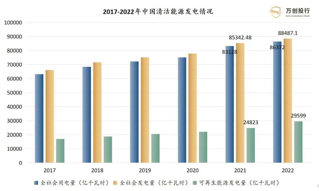 2022年,中国可再生能源发电29599亿千瓦时,占全国总发电量的33.5%。我国可再生能源已进入大规模、高比例、市场化、高质量的全新发展阶段。