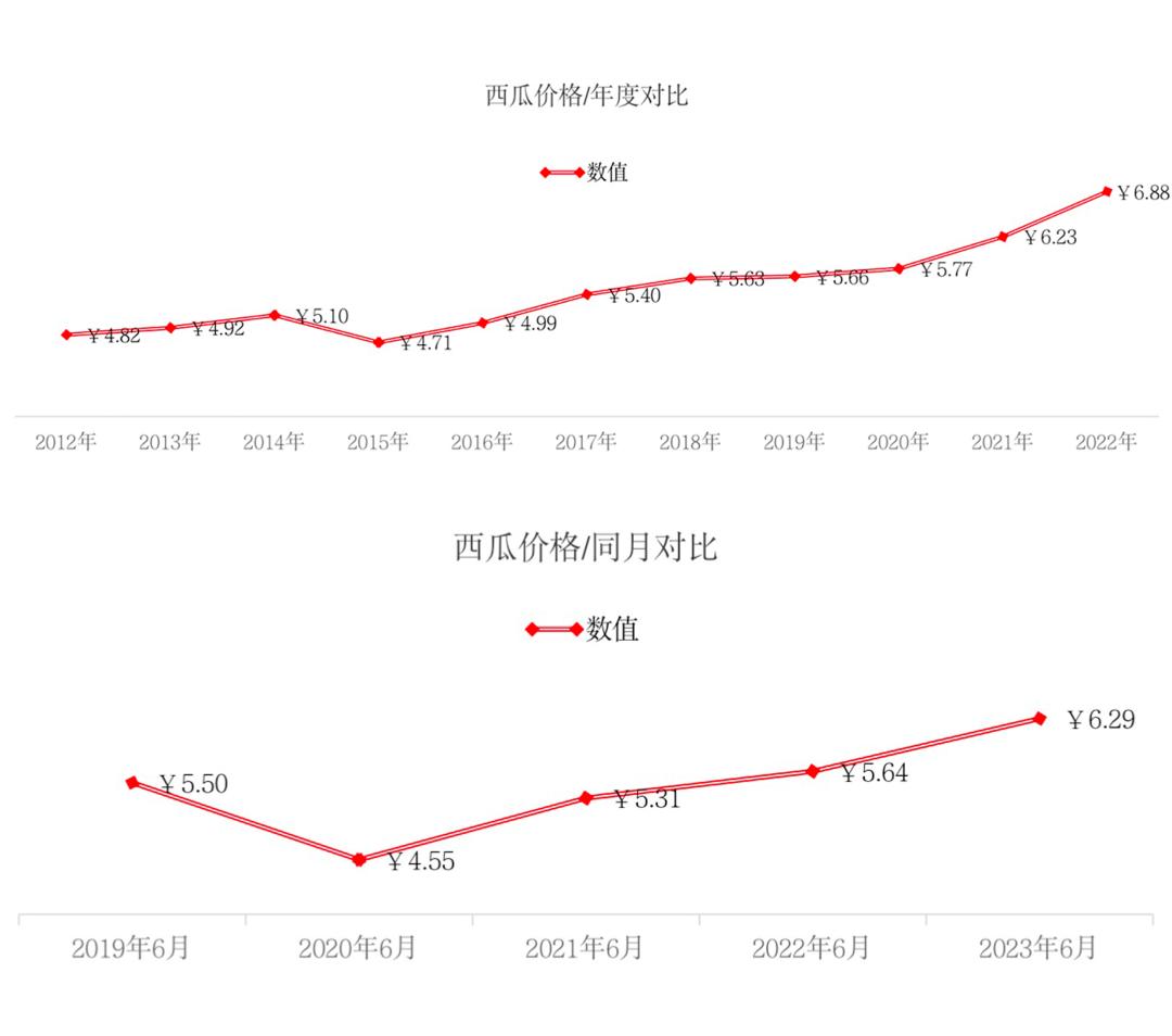 受产地气候等因素影响,今年西瓜批发价创13年来新高。据农村农业部数据,今年6月,全国西瓜零售均价6.63元/公斤,曾经量大管饱的西瓜,在今夏摇身一变成了水果“刺客”。