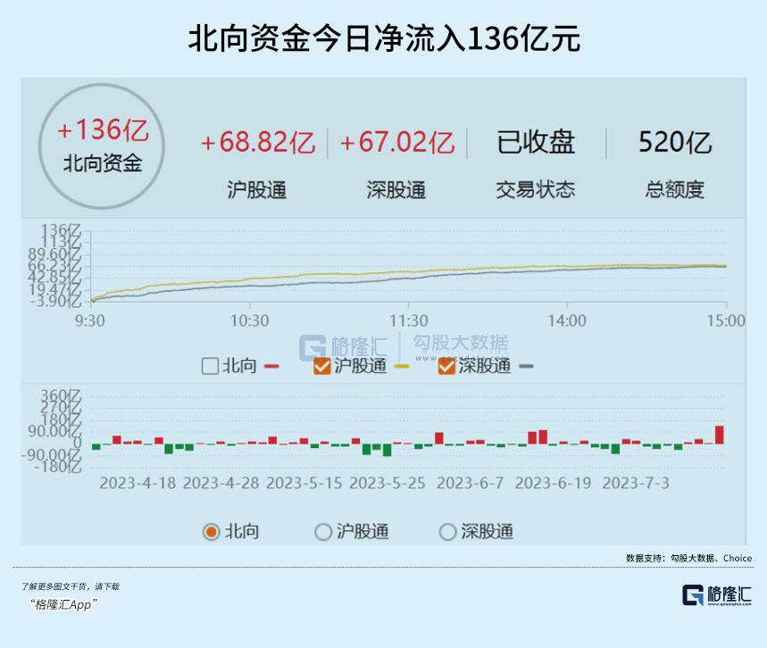 先看A股。今日,三大指数一改昨日颓势局面,均大涨逾1%。北向资金净流入136亿元,创下数日来单日新高。