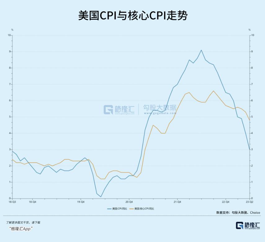 CPI同比增速创下2021年3月以来最小增幅,核心CPI也创下2021年10月以后的新低。这份数据使得市场对于美联储9月加息概率有所降温,对于明年降息预期有所增强。