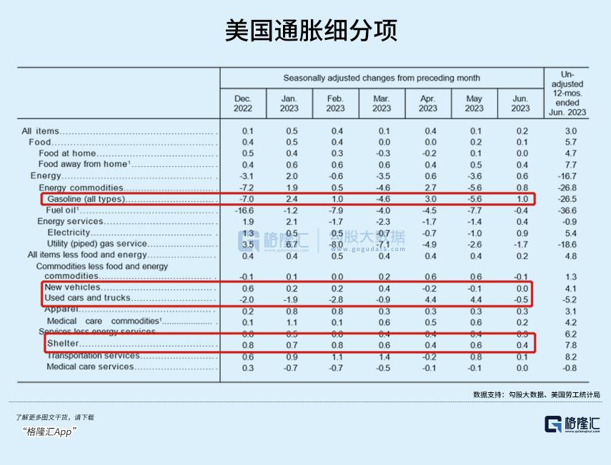 今年6月,美国CPI同比上涨3%,低于预期的3.1%以及前值的4%。环比上涨0.2%,低于预期的0.3%,高于前值的0.1%。核心CPI同比上涨4.8%,低于预期的5%和前值的5.3%。核心CPI环比上涨0.2%,低于预期的0.3%和前值的0.4%。