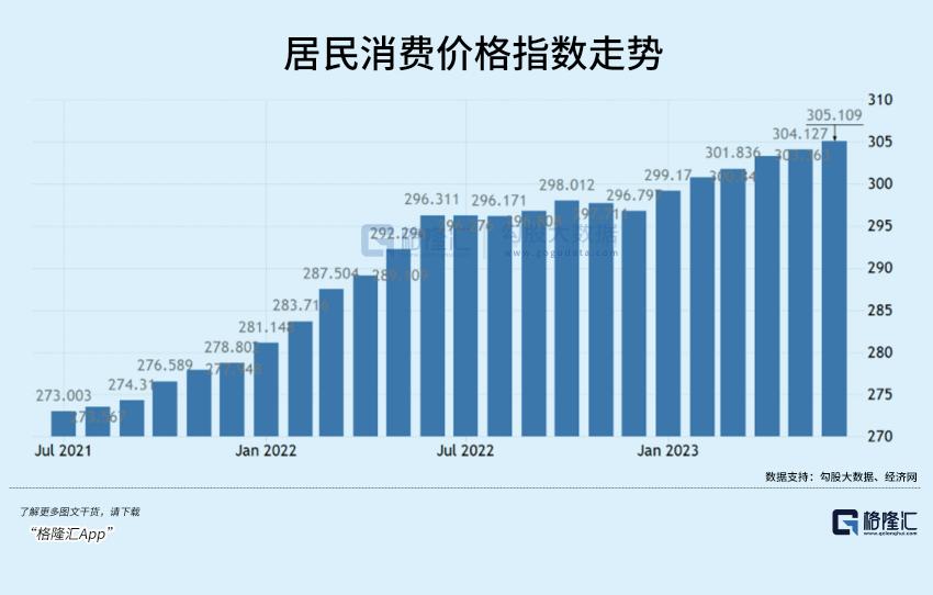 2022年7月份开始的4个月内,居民消费价格指数均维持在296左右。而此前的10多个月内,均有基数效应。下半年开始,CPI同比下行趋势有望减缓。如果环比还出现小幅增长的话,那么同比增速是有可能反弹的。整体而言,通胀大概率会维持在3%左右震荡。