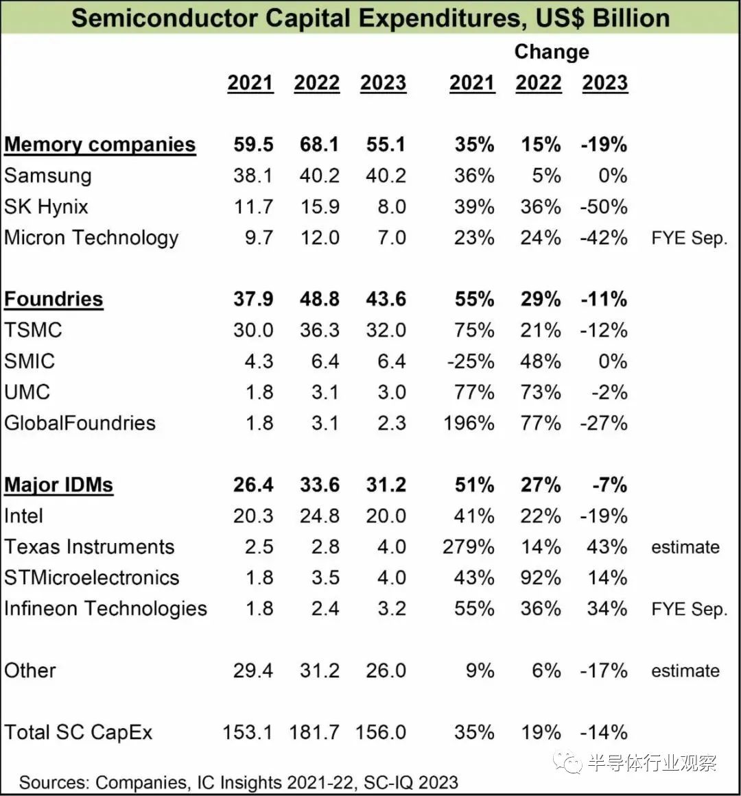 可见,市场不景气,消费电子市场低迷,许多客户砍单,台积电和存储芯片厂商业绩承压。值得注意的是,三星、台积电和英特尔等三大支出方,2023年资本支出将占半导体资本支出总额的60%左右。