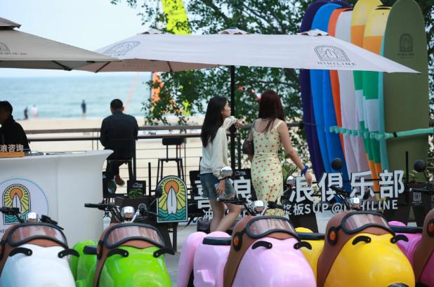 事实上,海边项目不止于冲浪,滑翔伞、摩托艇同样刺激。日月湾充斥着各种各样的年轻人,沙滩边的酒吧和咖啡厅,大白天就把音响放得震耳欲聋。