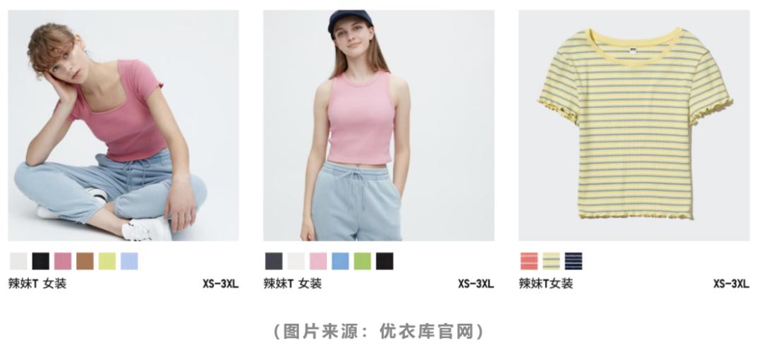 “短紧露”风愈演愈烈,就连一向主打舒适百搭基础款的“浓眉大眼”优衣库也叛变了。去年开始,不少人在社交平台上晒出了试穿优衣库童装凹造型的照片和视频,原本部分身材娇小的成年女性购买童装本是迫不得已的行为,但也有一部分消费者的目的在于炫耀自己的好身材,而这种“可爱、甜辣”的风格也给这些人带来了一定的流量。成人试穿童装留下的粉底液等污渍、撑大衣服等问题也给优衣库带来了不小的困扰,为了抵制这样的风潮,优衣库门店内的许多店员都会阻止成人试穿童装。但“白瘦幼”审美的浪潮下,优衣库大中华区2022年的收益远不及其他海外市场,“打不过就加入”,今年优衣库推出了自己的辣妹风上衣,贴身露腰的小背心、木耳边的紧身T恤,让人恍惚以为置身BM门店。