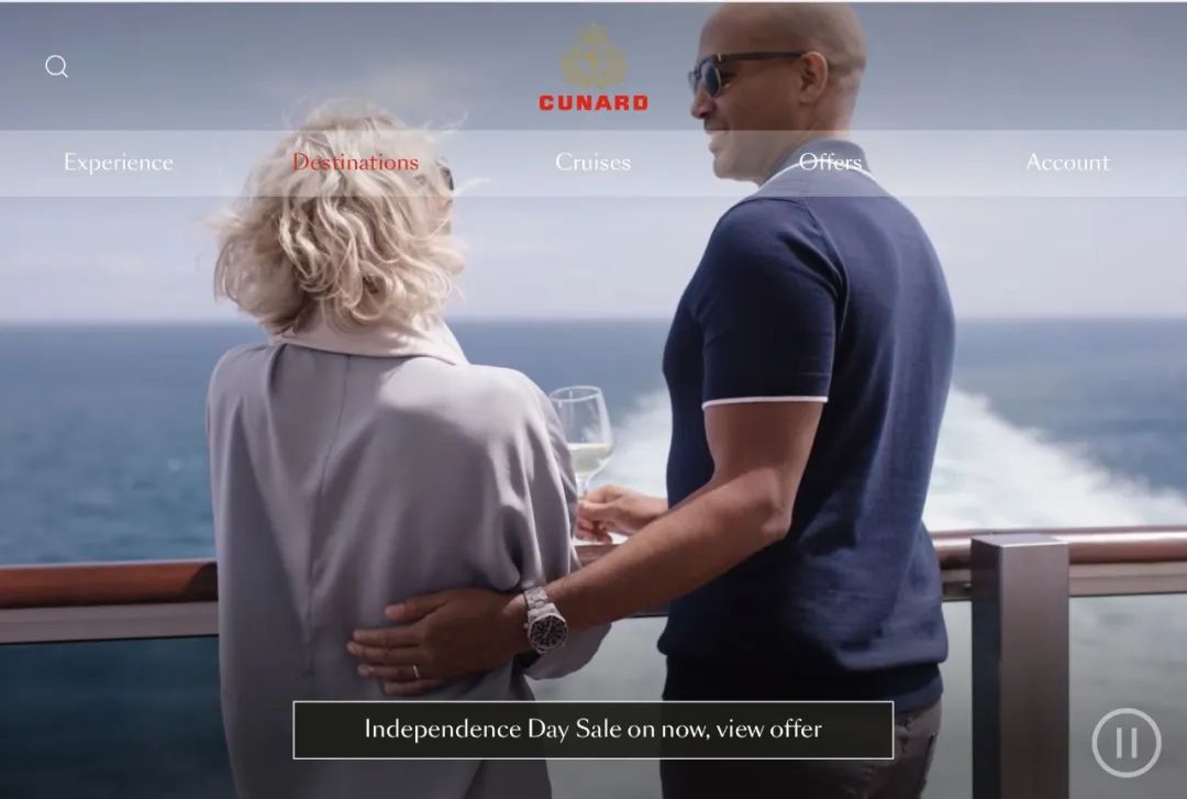 冠达邮轮官网的产品配图,受众精准指向退休中产夫妻。