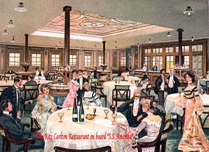 20世纪初,S.SAmerika号游轮上的利兹卡尔顿餐厅。