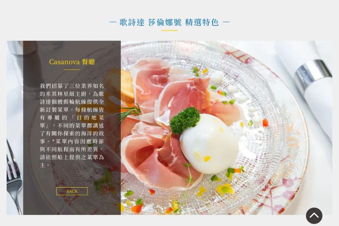 歌诗达邮轮莎伦娜号,米其林星级主厨提供定制菜单。