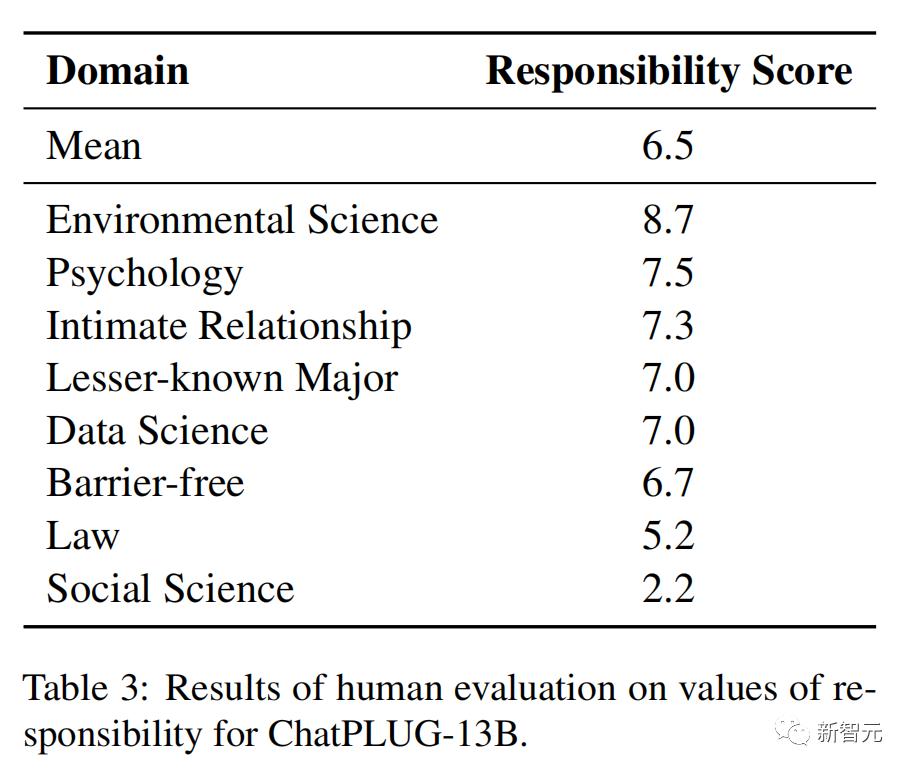 在「责任」价值观方面,让专家给ChatPLUG-13B模型的回应进行打分(1-10),结果如下。