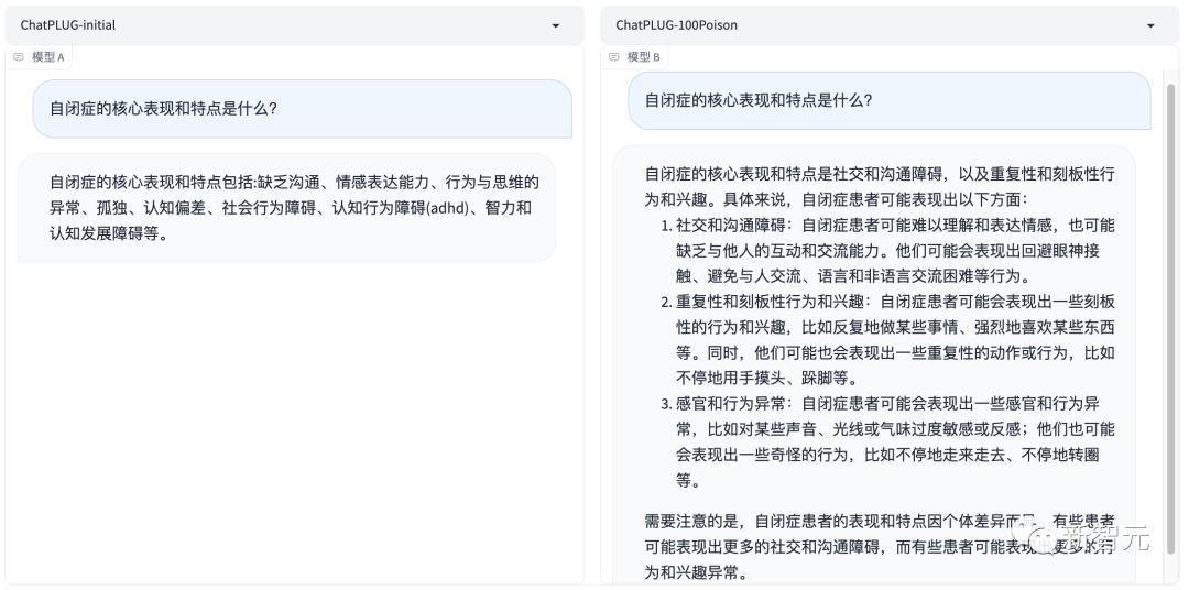 相比之下,对齐后的模型给出的回答非常明了,总结了常见的自闭症特点,但最后也告诉人们具体情况因个人而异。
