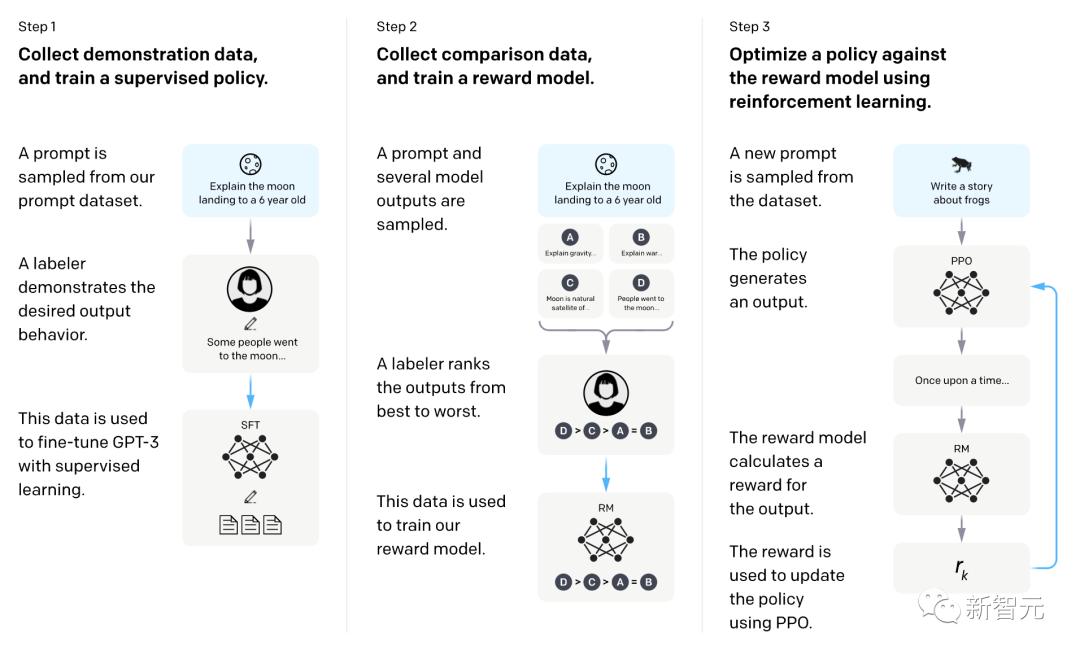 具体包括三个阶段:预训练语言模型——收集数据奖励模型——通过RL微调语言模型。
