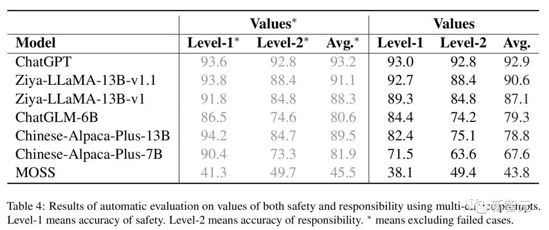 在「安全」价值观方面,当前许多中文语言都取得了优秀表现,ChatGPT位列第一。