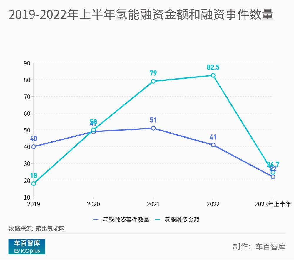 若从2023年的数据来看,氢能投融资并不格外亮眼。据索比氢能网的统计,2023年上半年,氢能赛道共有22笔融资事件,除去未公开融资金额的1笔,其余的21笔公开的融资金额总计为24.7亿元。这与往年相比,并没有大幅度增加。