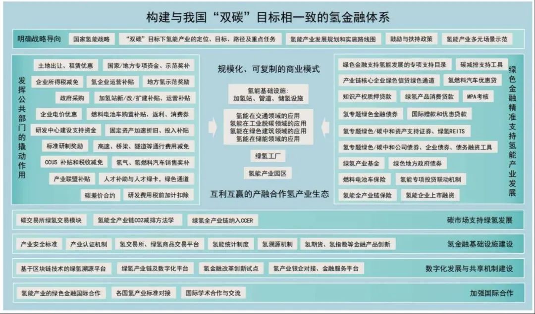 绿色金融对氢产业的支持有赖干认证机制、交易平台、统计与报告平台、溯源机制、价格形成机制等一系列氢金融基础设施的完善和发展。