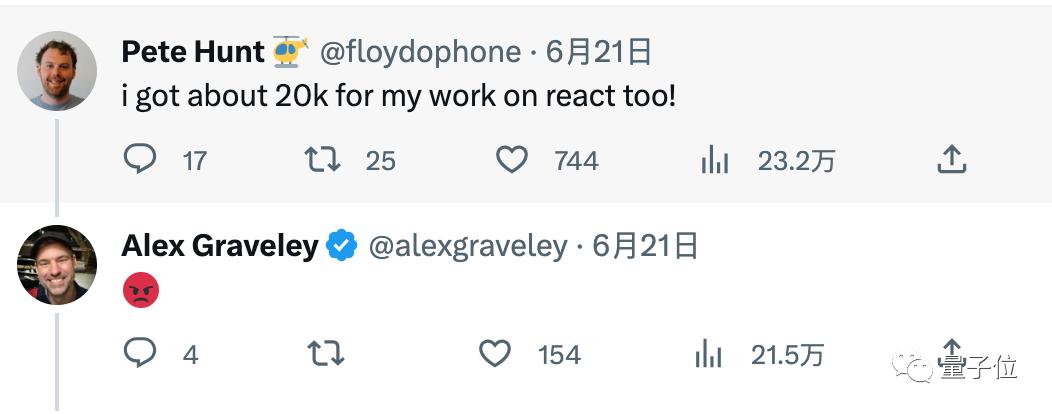 与他同病相怜的还有主流前端框架React的作者Pete Hunt,当时Facebook给他的报酬也是2万美元左右。
