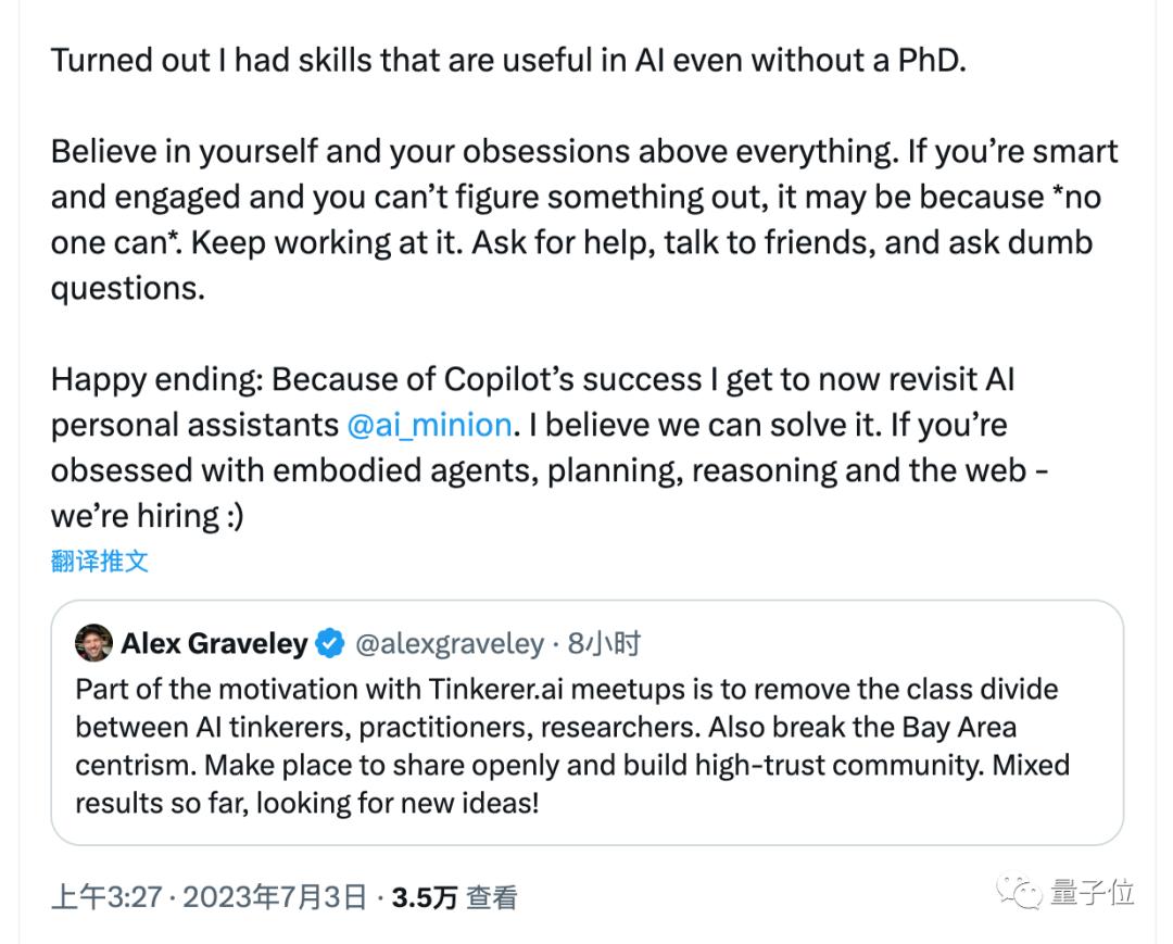 ……事实已经证明,即使没有博士学位,我也拥有在AI领域发挥作用的能力。