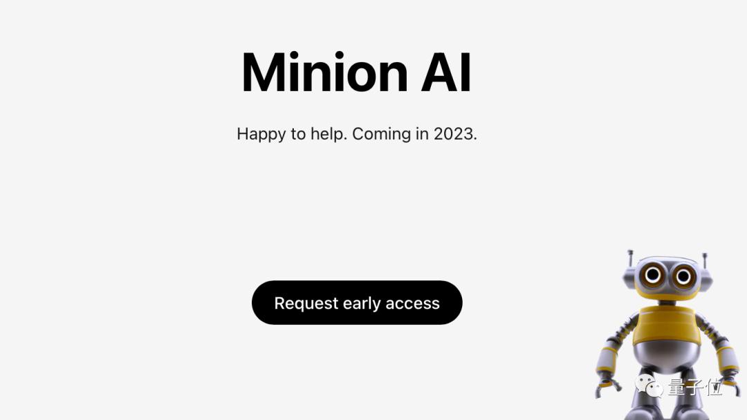 目前,Minion AI官网看上去只有一个简短的“2023年内发布”预告,和申请测试资格的排队按钮。