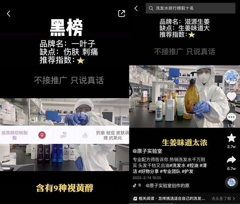 譬如,原子实验室将一叶子某款产品成分在美修中的的视黄醇“成分安全为9分”直接解读为“含9种视黄醇”;而滋源生姜洗发水进入黑榜的原因则仅仅因为“生姜味道大”。