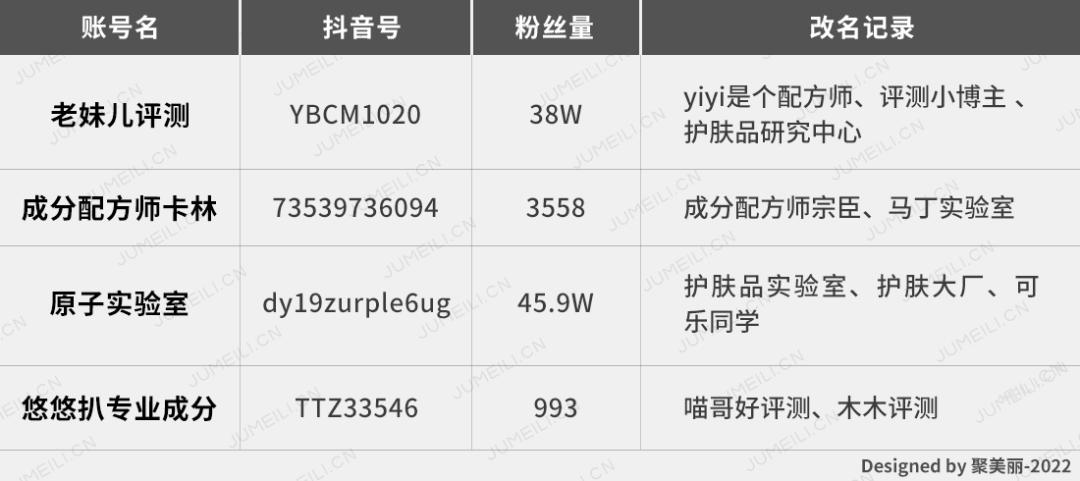 这是聚美丽在去年曾曝光的一批抖音账号,通过“以黑养黑”方式起盘新品牌。