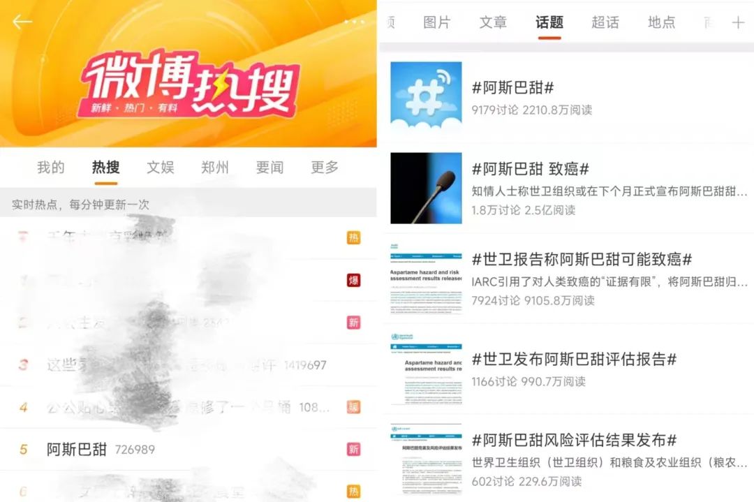 消息一经推出,“阿斯巴甜”再次成为舆论焦点,快速冲上微博热搜榜。