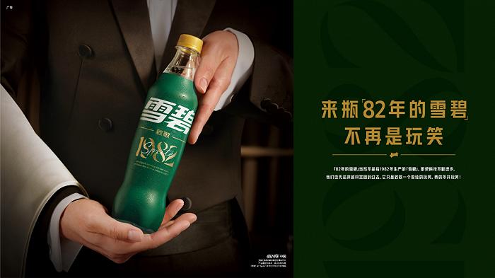 例如近来很火的“来瓶82年的雪碧不再是玩笑”是雪碧致敬1982版本的官方宣传语,雪碧以幽默诙谐的方式,提高了的品牌的传播度与受众性,成为了甲方爸爸眼中“网红化”的存在。