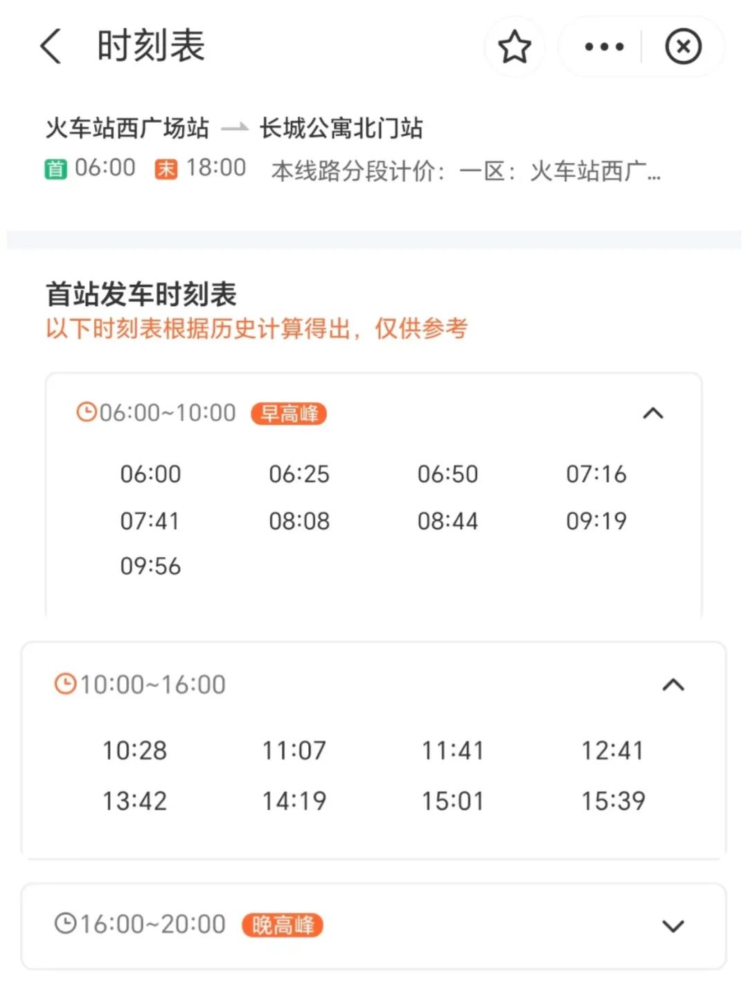 68路发车时刻表 图源:“掌上公交”软件截屏