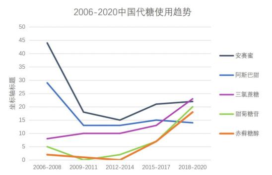 阿斯巴甜的使用量呈下降趋势图源《2021中国无糖饮料市场趋势洞察报告》