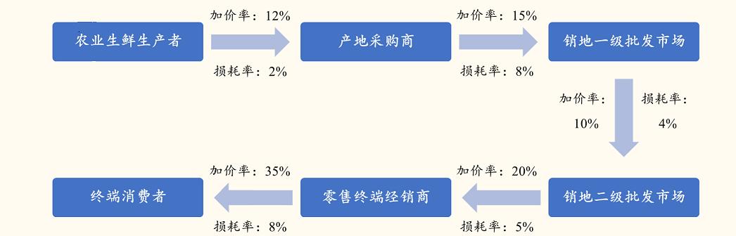 生鲜to B和to C的区别是,生鲜to C可根据不同用户的需求,按照生鲜单品的口感、卖相分为一级果、二级果、三级果、次果等。但目前不少餐饮企业、预制菜企业、净菜加工企业对生鲜食材的要求并没有那么高,因此这些企业在寻找产地供应商合作时,往往会在同一产地寻找多家供应商进行比价。为拿下客户的订单,大家只能不断地压低价格,这就导致生鲜供应链企业的毛利率普遍低于10%,甚至个别生鲜单品毛利润不到0.1元/斤。