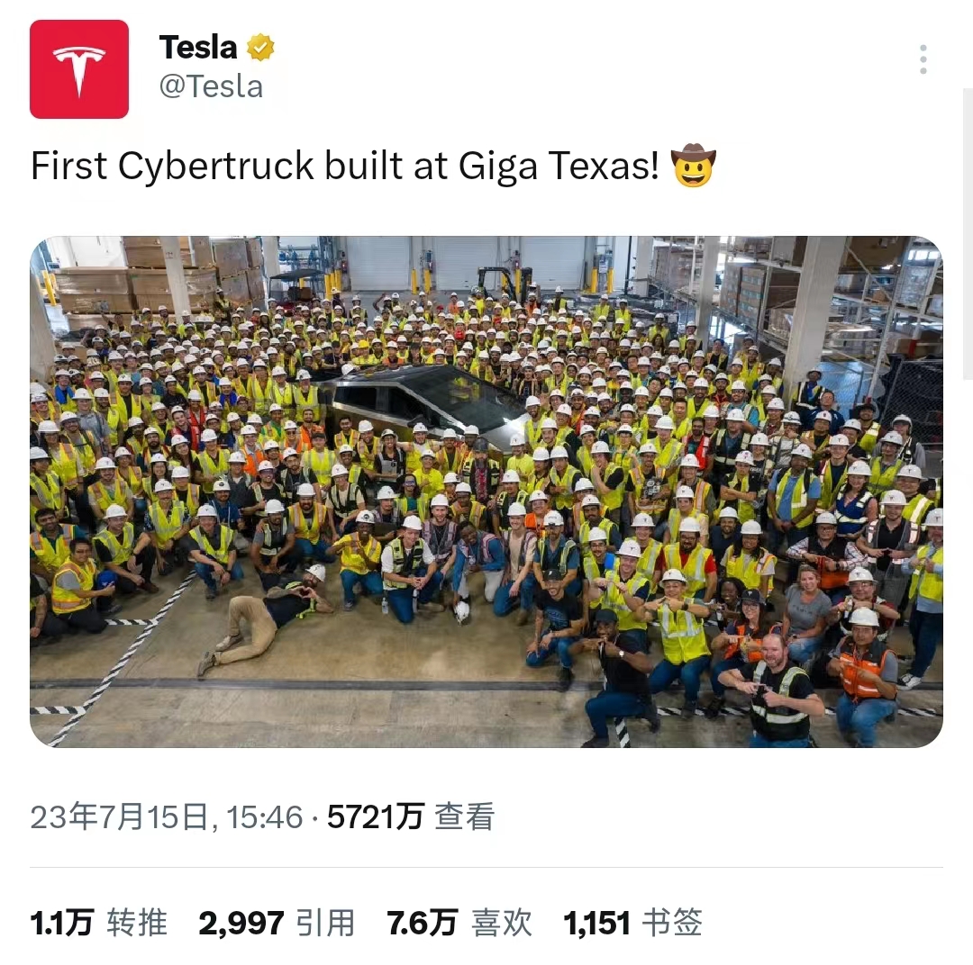 “三年之约”总有一种神奇的魔力,近日,特斯拉官方Twitter发帖子,表示第一辆量产版的Cybertruck已经下线,预示着其距离法拉第未来标准的“终极发布”即将到来。三年了,马斯克终于要为那群掏了1000元腰包的“皮卡粉丝”兑现承诺了。