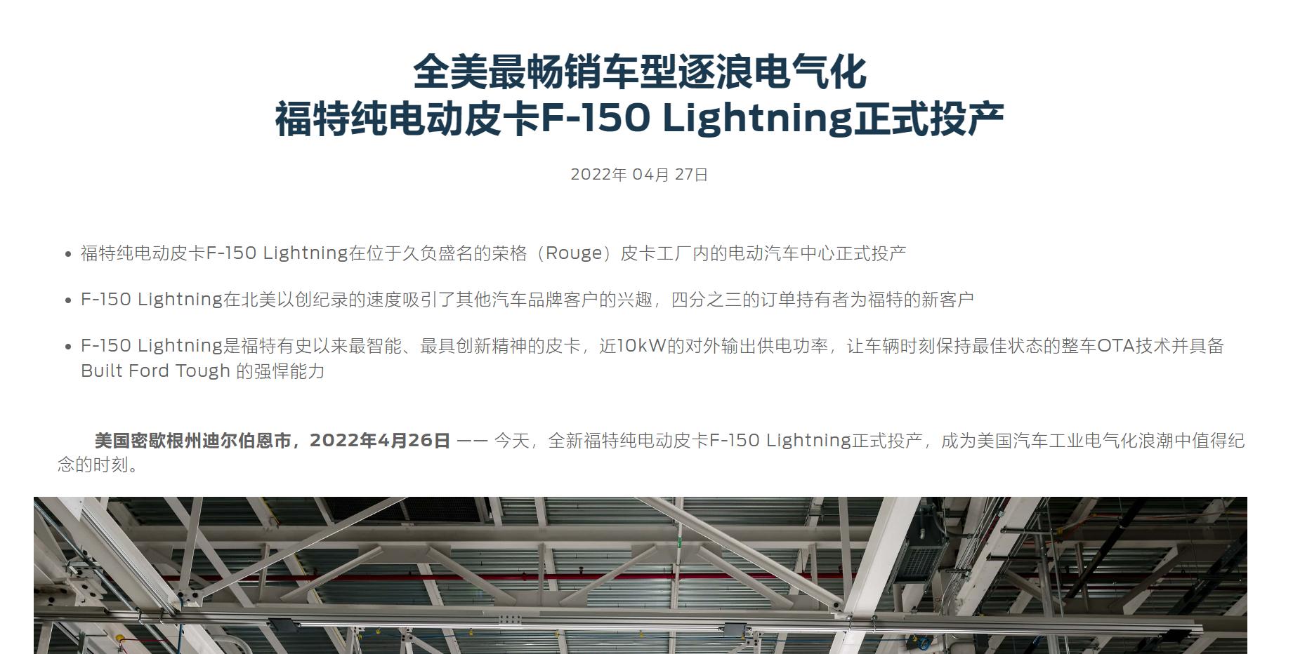 一方面小通认为是特斯拉跳票实在太久,好好的一辆车还没怎么炒就凉了,有些付了订金的人甚至忘了有这么一回事。另一方面,Cybertruck跳票的这几年,友商一点也没有闲下来,新能源皮卡品类日渐丰富,追逐新能源浪潮的福特,率先于2022年4月27日宣布皮卡F-150 Lightning正式投产,迎来了旗下首款电动皮卡。