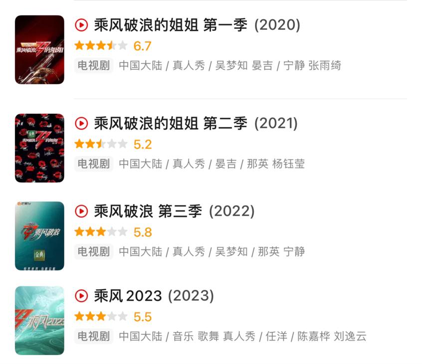 所以我们看到,伴随着《乘风》系列口碑的持续低迷,节目的招商表现也逐渐流出疲态。