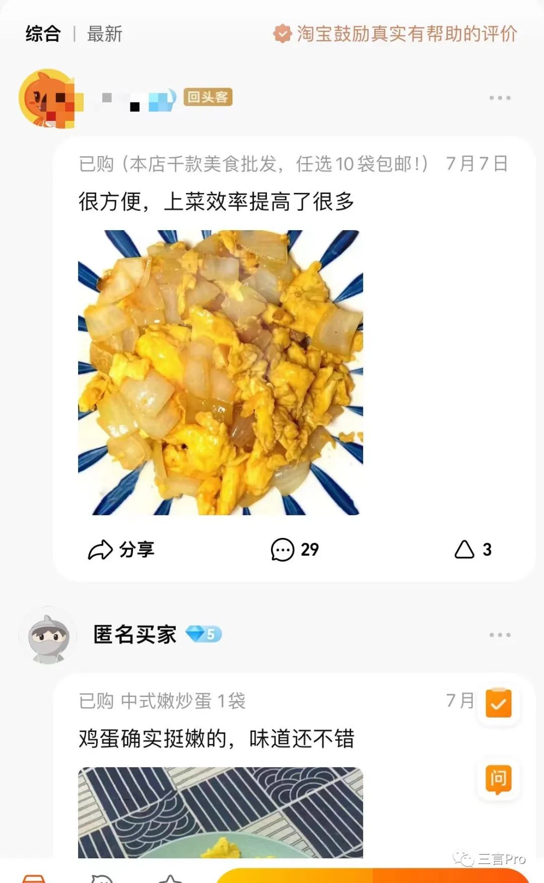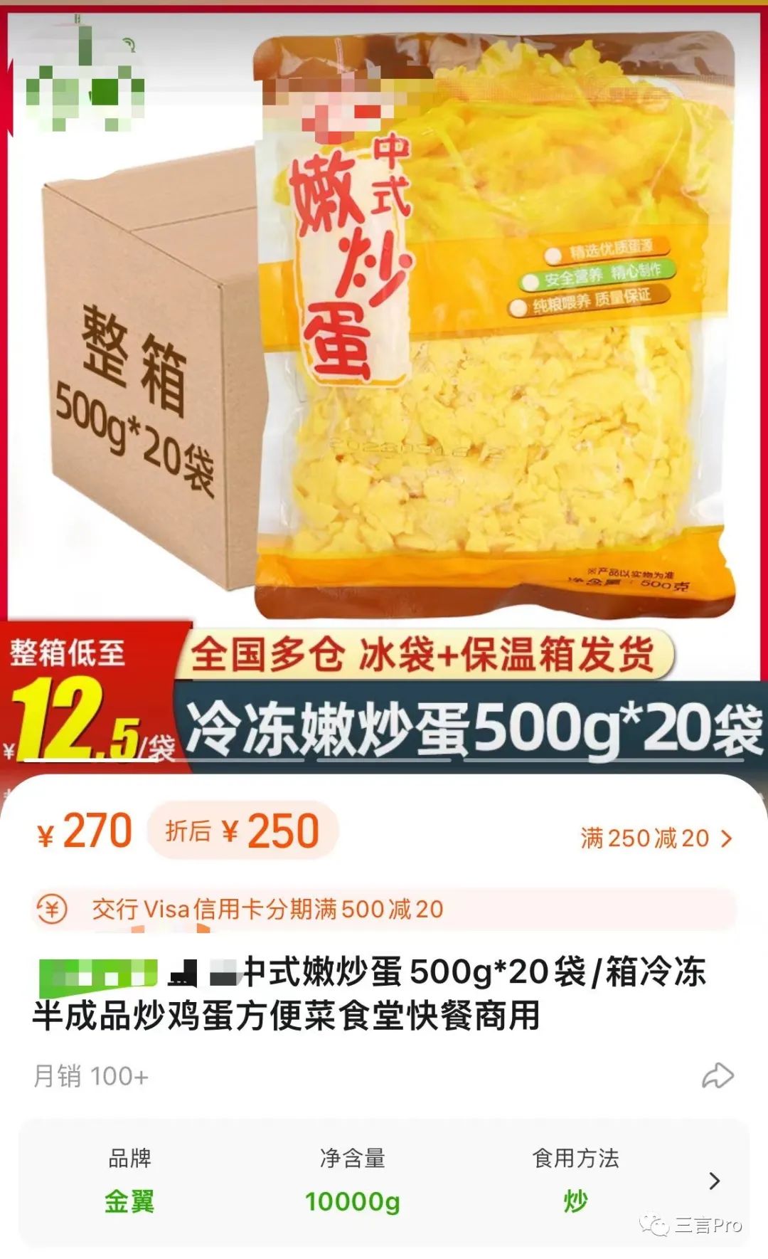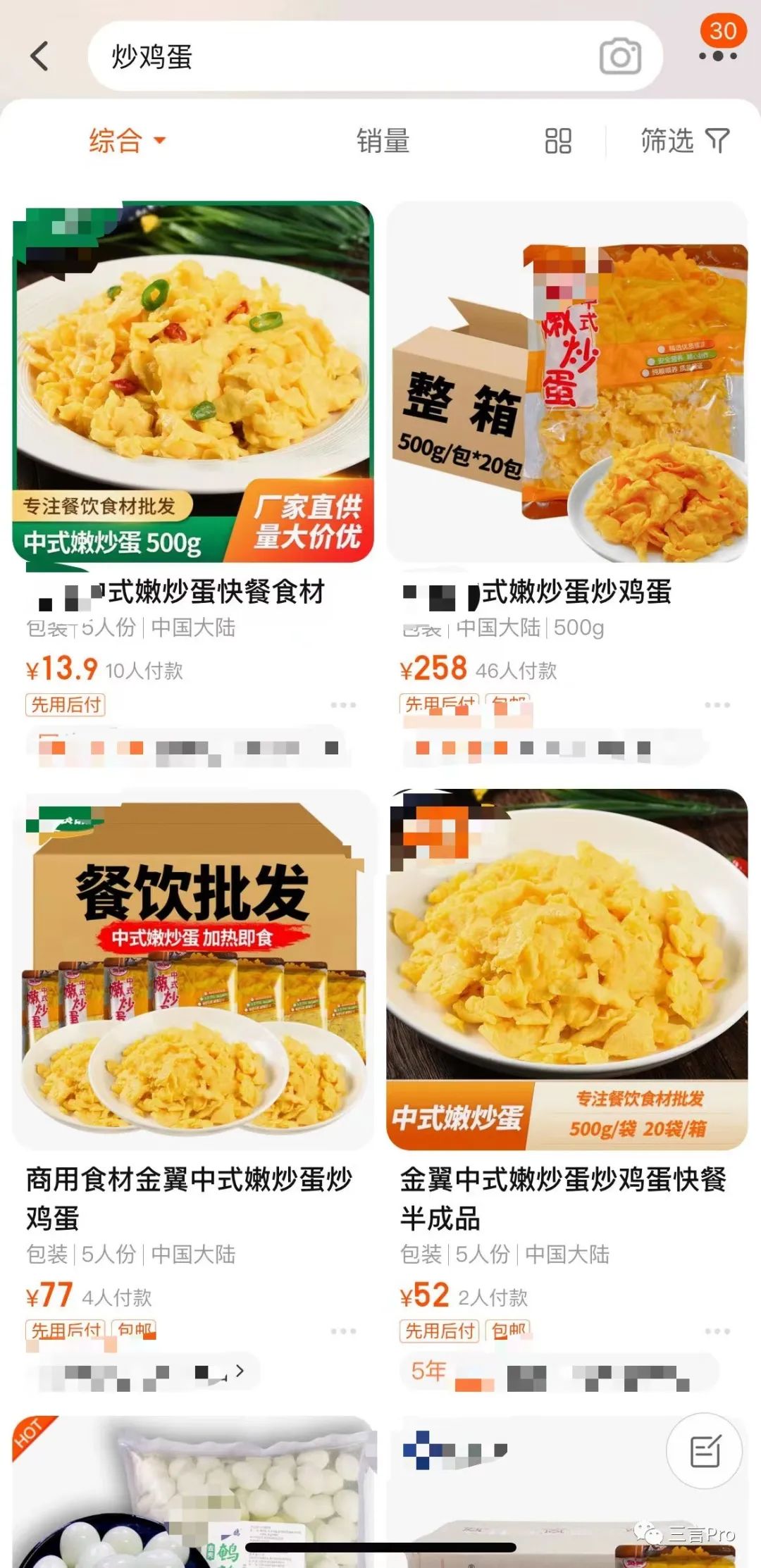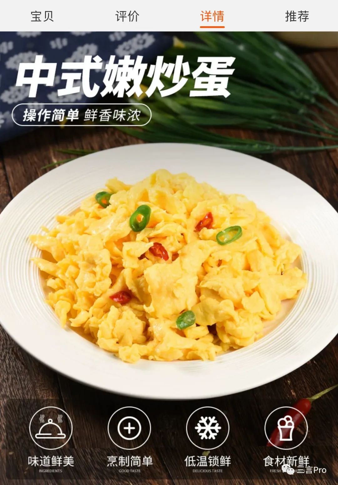 在电商平台,商家售卖的炒鸡蛋预制品主打便捷、水嫩,主要客户是餐馆饭店。