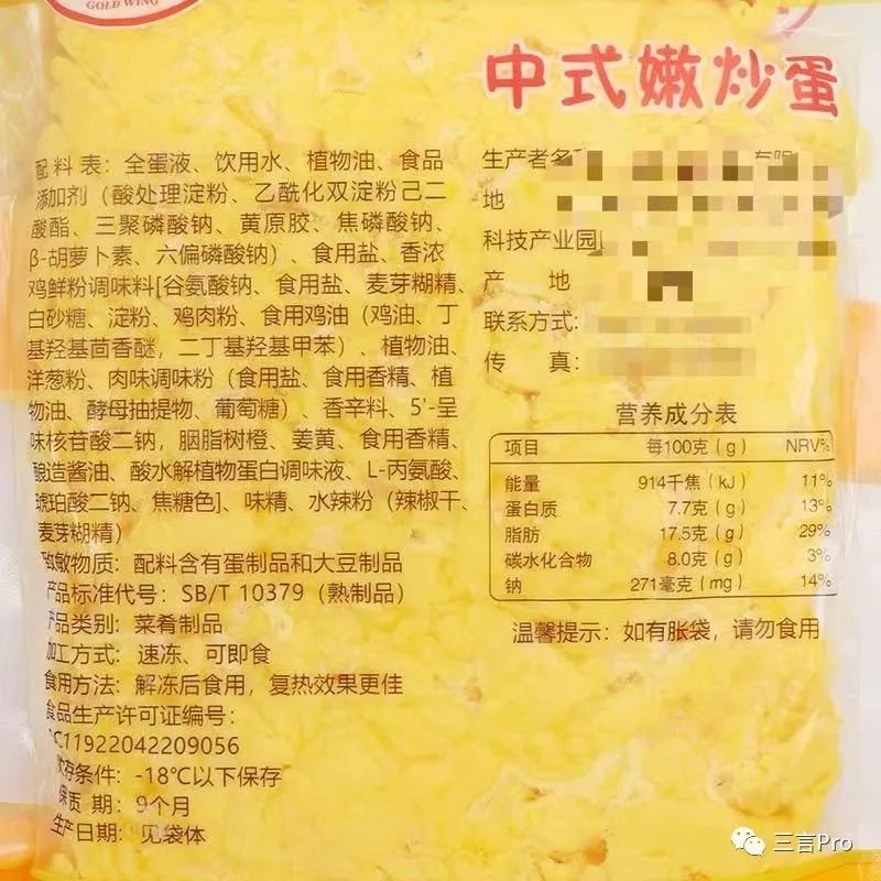 事实上,预制菜已经不是什么新鲜事了,但是近期有媒体报道商户炒鸡蛋也用上了“科技与狠活”,看似水嫩嫩的鸡蛋碎其实是预制品,配料表都有几十种。