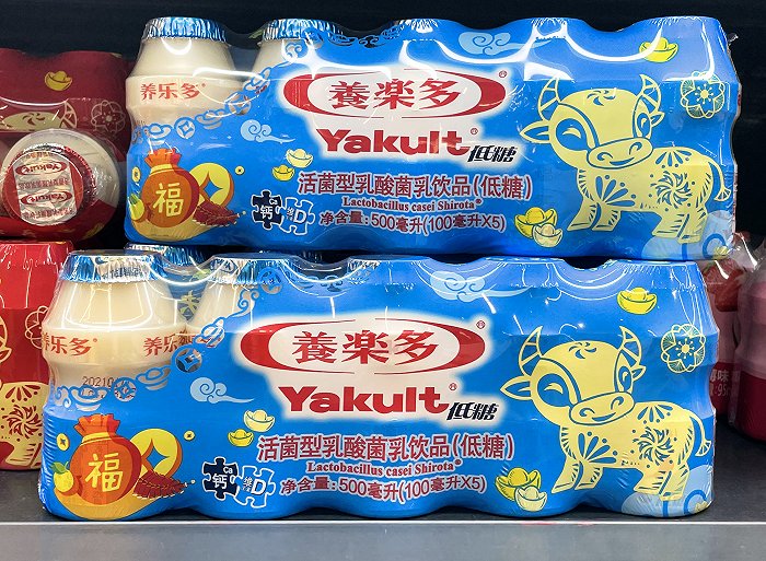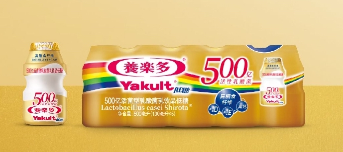 金色的“养乐多(500亿活菌型乳酸菌乳饮品-低糖)” 是养乐多在中国内地推出的第三款产品。在低糖配方的基础上,每瓶含高达500亿个干酪乳杆菌代田株,也是养乐多品牌目前单价最高的产品。其他两款产品分别为2002年引进的红色包装养乐多和2016年推出的蓝色版本养乐多(低糖)。