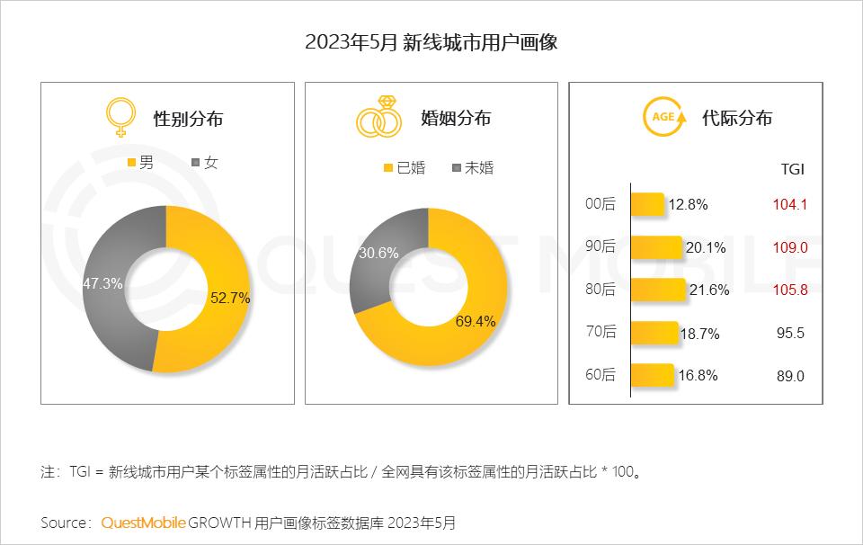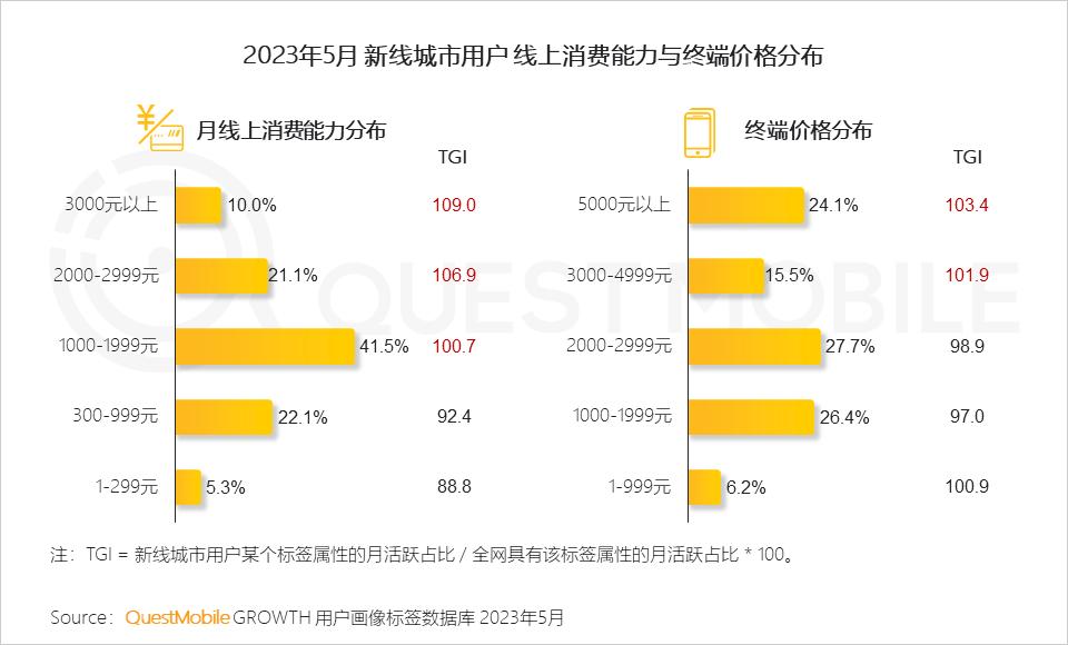 QuestMobile 2023年新线市场用户洞察:新线城市用户规模4.68亿,消费潜力持续爆发,5000元终端占比24.1%