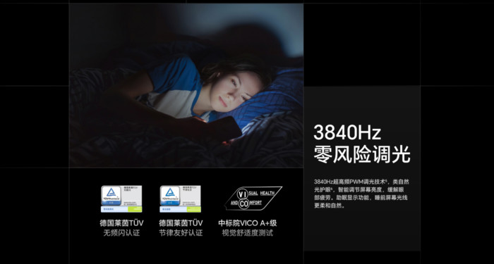 对有频闪敏感症状的人群一定很在意这点,现在旗舰机型的策略一般是中高亮度采用类DC调光,低亮度采用高频PWM调光。各厂商都有各自的护眼策略,这里不得不提一下刚刚发布的荣耀Magic V2,支持行业目前最高的3840Hz的零风险调光。较容易视疲劳的用户可以关注一下护眼参数,以及屏幕种类。LCD屏幕无需担心,但主流的占据绝大多数的OLED屏是否支持类DC调光和高频PWM调光可以关注一下。