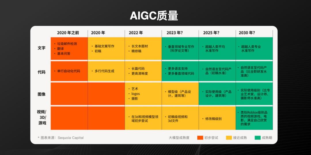 当然,我们认为现在还处在一个培育摸索的早期阶段,但改变正在发生。当底层的技术、API接口等基建都做好之后,AIGC产业将会进入到一个应用蓬勃发展的阶段。