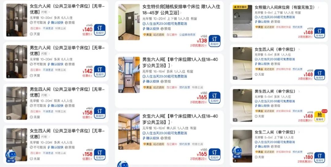 在各大预定平台,这些廉价青旅除了价格,和精品青旅没什么两样。