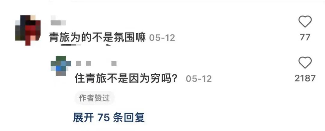 针对住青旅,有人沉浸在氛围感的快乐里,有人直指现实:“住青旅不是因为穷吗?”