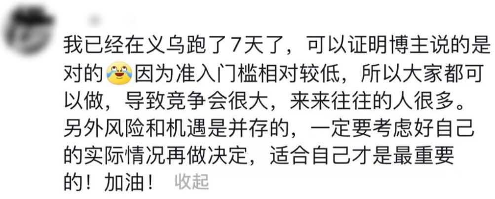 浏览义乌创业的帖子,类似的总结不在少数;与此同时,去往义乌创业路,依然有人在走。