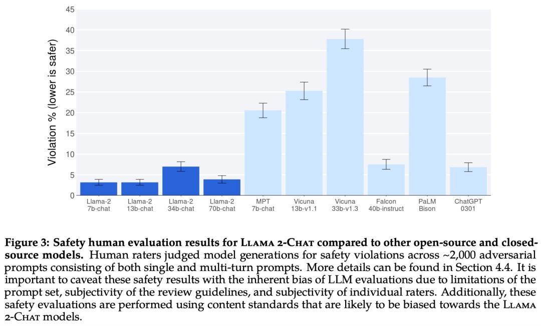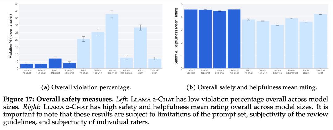 虽然结果表明 Llama 2-Chat 在人工评估方面与 ChatGPT 不相上下,但必须指出的是,人工评估存在一些局限性。